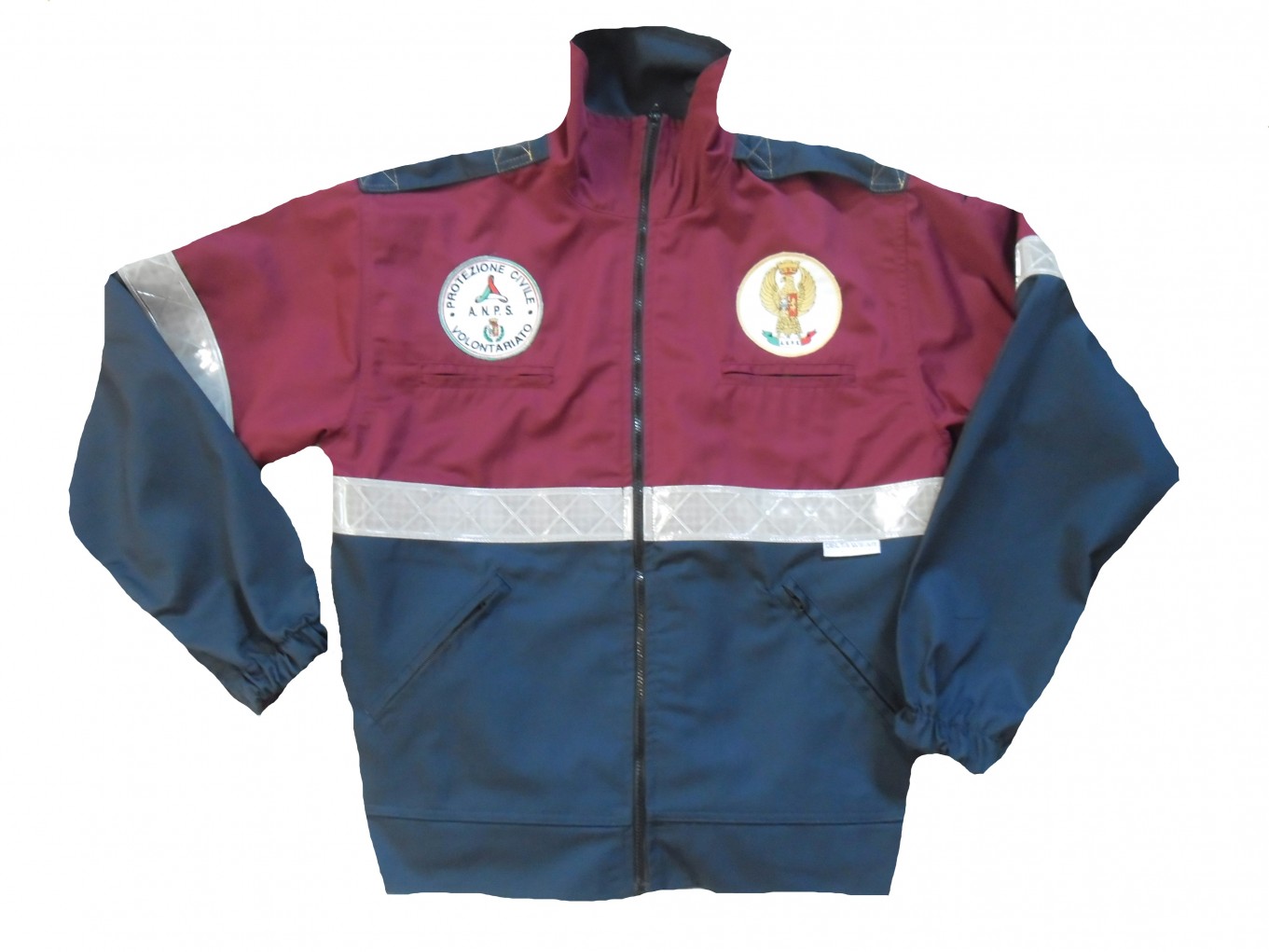 JACKET WITH DETACHABLE SLEEVES, TWO-TONE PURPLE/NAVY COLORS, TO THE BREAST 2 POCKETS, TELEPHONE POCKET, PEN POCKET, BADGE , 2 POCKETS IN BACIN AREA; CLOSING WITH CENTRAL ZIP, DOUBLE REFLECTIVE TAPE BRAND REFLEXITE