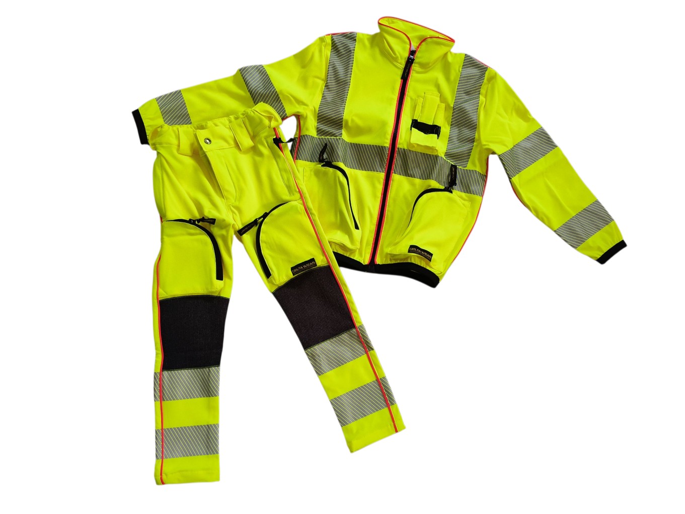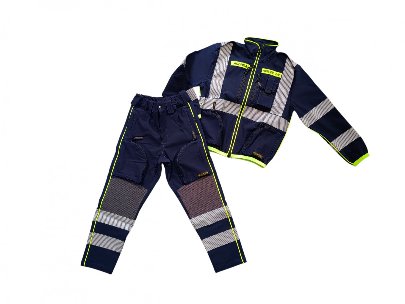 Accesorios : 2 Bolsillos delanteros con cierre de cremallera. 2 Bolsillos en los muslos con cierre de cremallera y laterales en color amarillo fluor. 1 Bolsillo strasero. o Fondo tubular. o Refuerzo en rodillas en Cordura negra.